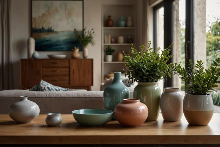 Keramik-Vasen in Pastelltönen für den Esstisch