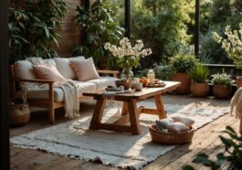 Eine Balkon-Sitzgruppe in lebendigen Frühlingsfarben verleiht jedem Außenbereich eine frische und moderne Atmosphäre. Statt auf klassische Pastelltöne zu setzen, bieten kräftige Farben wie Sonnengelb, Grasgrün oder Korallenrot spannende Akzente, die den Frühling dynamisch widerspiegeln. Dabei lassen sich Möbelstücke aus Materialien wie Holz, Metall oder Rattan optimal mit farbenfrohen Polstern und Kissen gestalten. Für einen harmonischen Look sorgen kombinierte Farbtöne, die an die Natur erinnern, etwa Orange mit Türkis oder Fuchsia mit Limettengrün. Diese lebhaften Farbwahl kann durch passende Accessoires wie bunte Blumentöpfe, Outdoor-Teppiche und Laternen ergänzt werden, die ebenfalls frische Akzente setzen. Die Kombination aus Komfort und Stil schafft eine einladende Sitzgruppe, die zum Verweilen an warmen Frühlingstagen einlädt. Zudem fördern kräftige Farben die gute Laune und erzeugen einen starken Kontrast zum urbanen Umfeld. So wird der Balkon zum kleinen, farbenfrohen Rückzugsort, der moderne Ästhetik und Frühlingsenergie gekonnt verbindet.