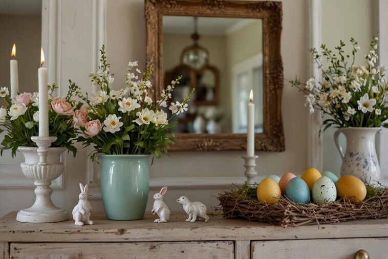 Elegante Osterdeko als Kerzen-Tischmittelpunkt