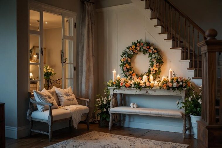 Ein Spiegelrahmen, geschmückt mit einem frischen oder künstlichen Blumenkranz, ist eine besonders wirkungsvolle Dekoration für den Flur im Frühling. Diese Kombination verbindet praktische Nutzung mit ästhetischem Flair und schafft sofort eine einladende Atmosphäre. Blumenkränze aus zarten Frühlingsblumen wie Tulpen, Narzissen oder Ranunkeln bringen Farbe und Leben in den Eingangsbereich und können je nach Saison und Stimmung individuell gestaltet werden. Dabei bieten sich sowohl natürliche Materialien wie Moos, Zweige und Blätter als auch stilvolle Accessoires wie Schleifen oder kleine Dekoelemente an. Die Farbauswahl sollte harmonisch auf den Spiegelrahmen abgestimmt sein, um ein stimmiges Gesamtbild zu erzeugen. Darüber hinaus ist der Blumenkranz ein vielseitiges Dekorationselement, das leicht ausgetauscht und neu arrangiert werden kann, sodass sich die Frühlingsdeko im Flur immer wieder neu anpassen lässt. Insgesamt verwandelt die Kombination aus Spiegel und Blumenkranz den Flur in einen freundlichen Eingangsbereich, der Besucher willkommen heißt und die positive Energie des Frühlings ins Zuhause einlädt.